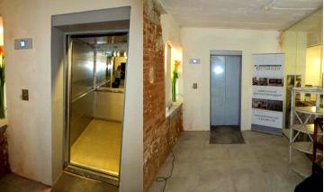 Здание офисного квартала-бывшая территория фабрики Московский шелк. Разработан проект замены грузового лифта на пассажирский, с переносом местоположения входа в лифт, а также с добавлением дополнительной остановки внизу, на цокольном этаже.