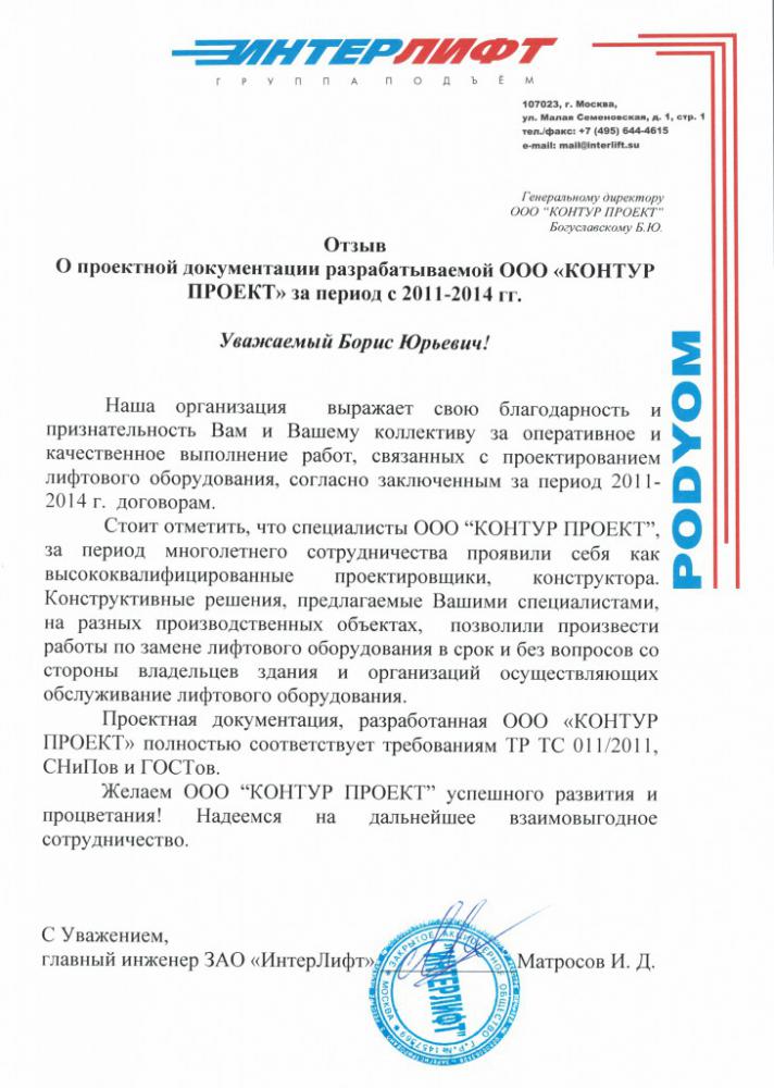 ООО «Контур Проект» специализируется на разработке проектов установки и замены лифтов. Сотрудники нашей компании займутся разработкой строительных заданий, в оговоренный срок изготовят типовые монтажные чертежи и другую необходимую вам проектную документацию.